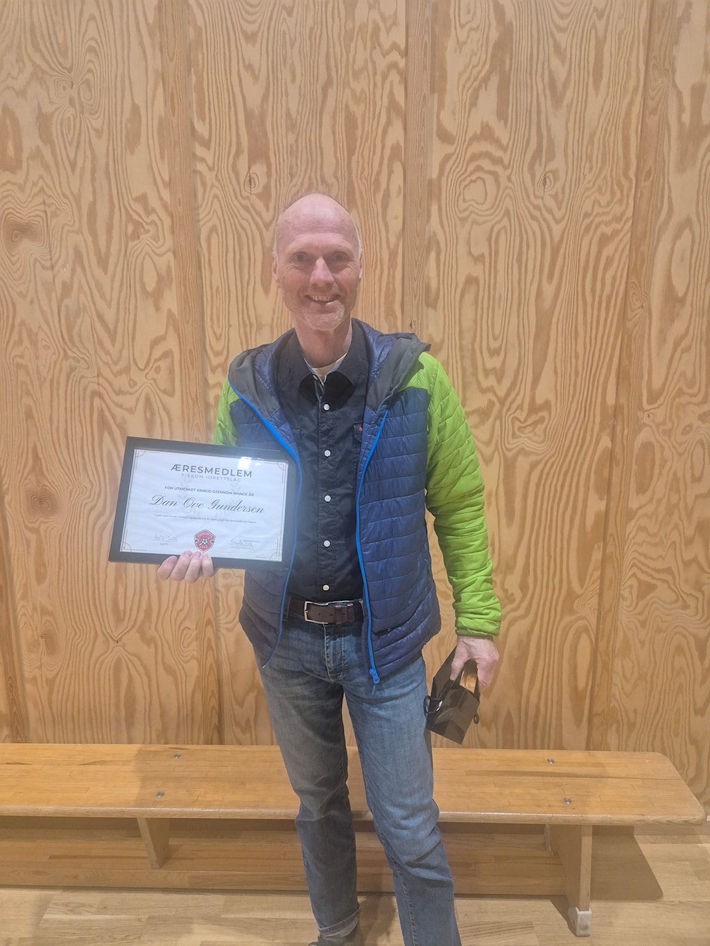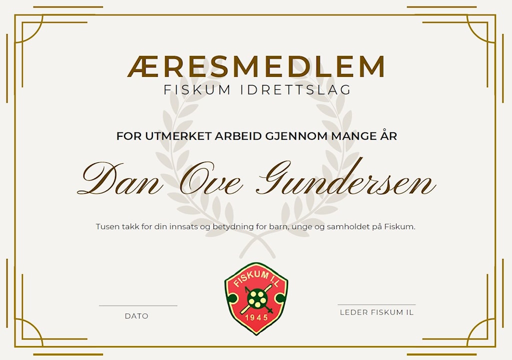 - Med grunnlag i styrets enstemmige innstilling lest opp, utnevnes Dan Ove Gundersen, til æresmedlem i Fiskum IL.